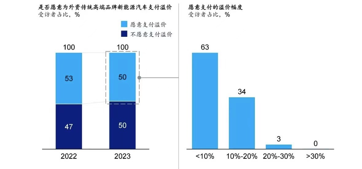 在《2024麥肯錫中國(guó)汽車消費(fèi)者洞察》中顯示,50%的受訪者不愿意為外資品牌支付溢價(jià),相比于無形的品牌力,消費(fèi)者現(xiàn)在更愛實(shí)在的技術(shù)與配置。
